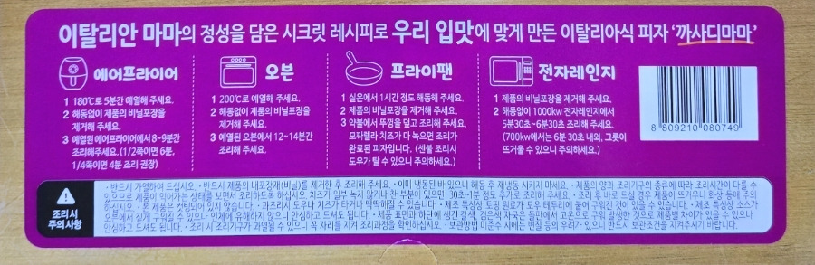 180도 예열 5분>> 해동없이 비닐포장 제거 >> 8~9분간 조리
