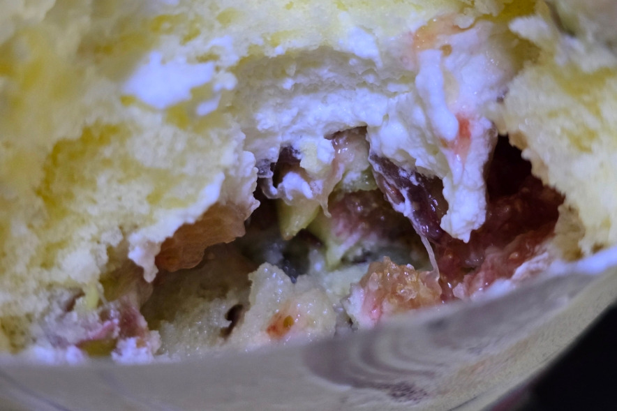 총평 : 크림 범벅 과일 케이크 속 크레페
