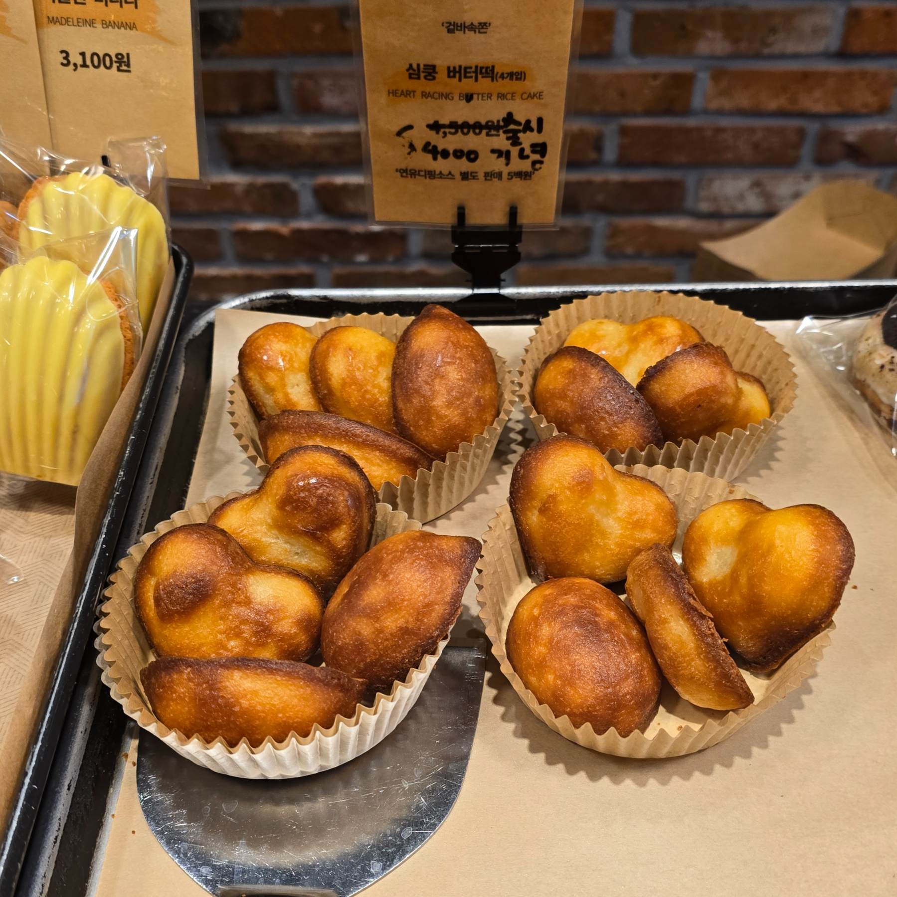 갓 나온 버터떡이 진열되어서